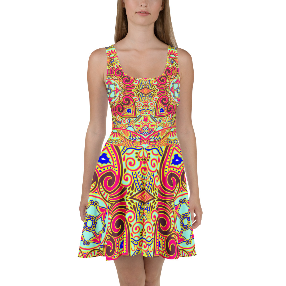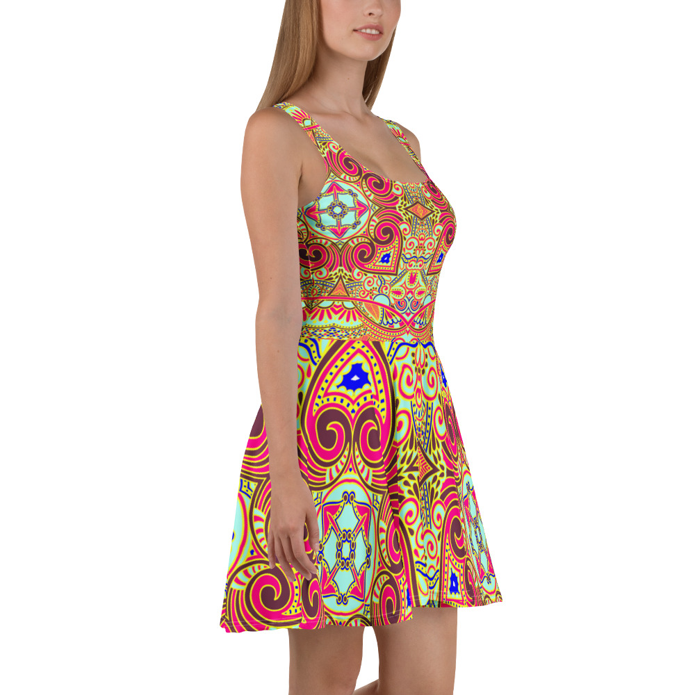 Dress to impress with this sleeveless skater dress! The soft fabric and flared skirt give it an elegant twist that brings out the intricate design with a beautiful vibrancy.
